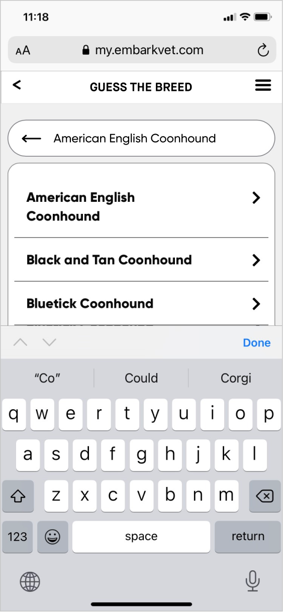 Since this is a prototype, you are only able to submit certain guesses. Please submit guesses for Pembroke Welsh Corgi and American English Coonhound. Please voice your thoughts aloud as you make your guesses. [Verbal response]