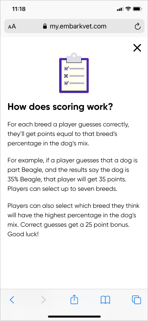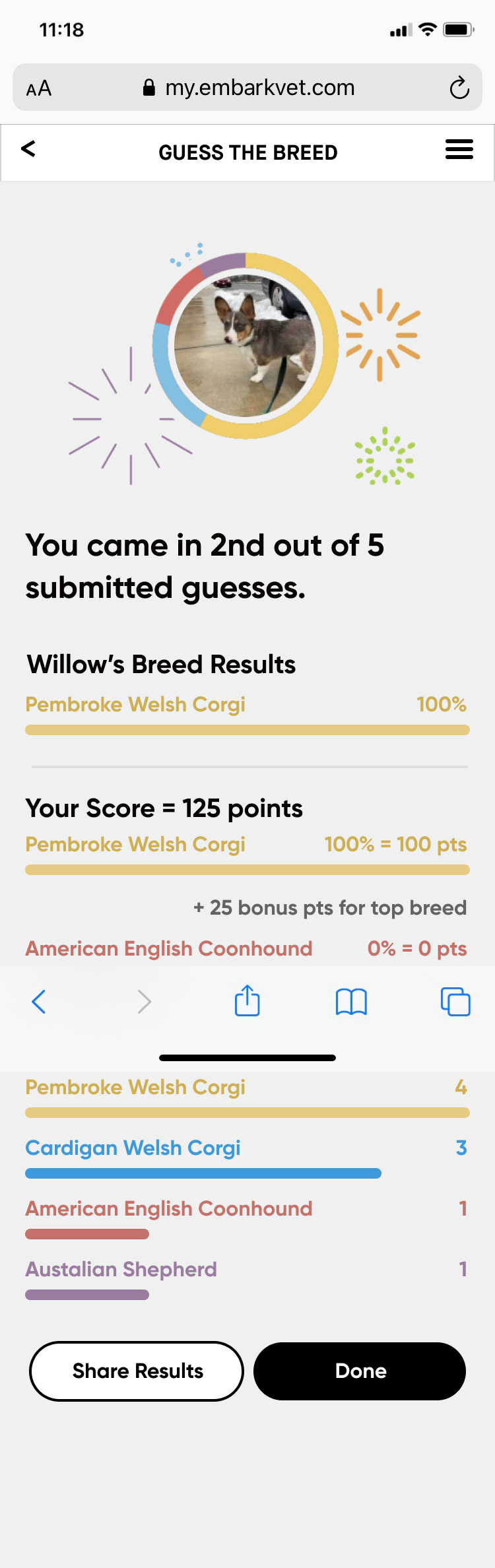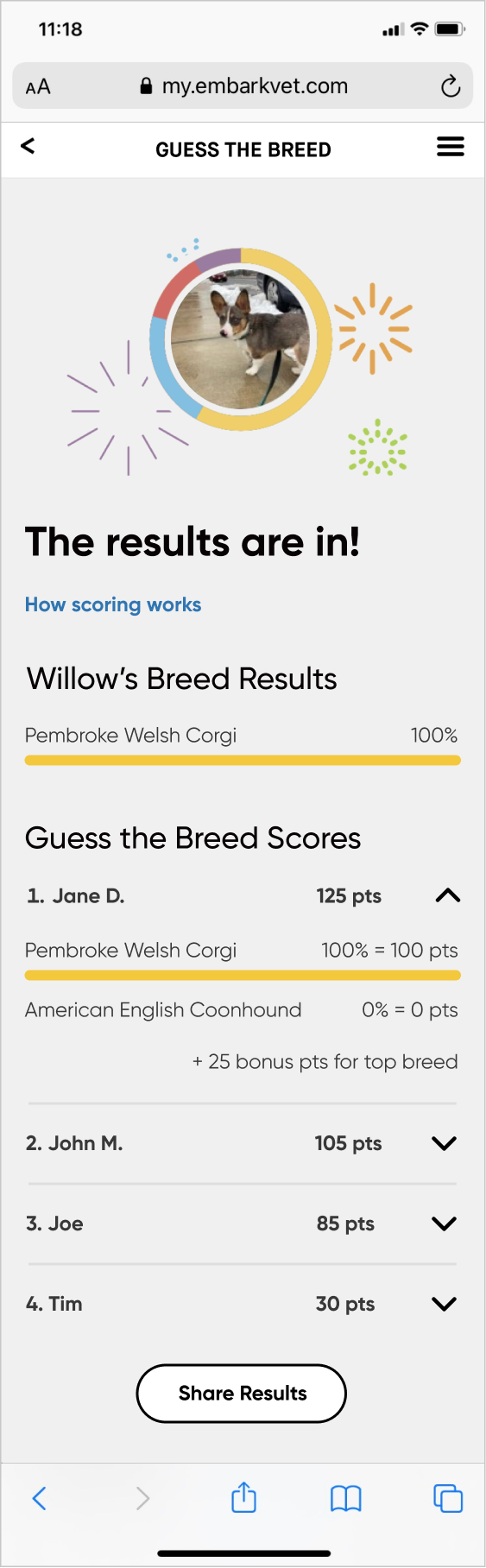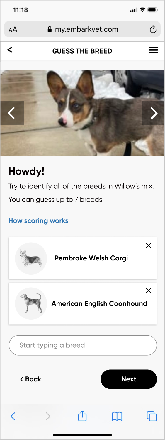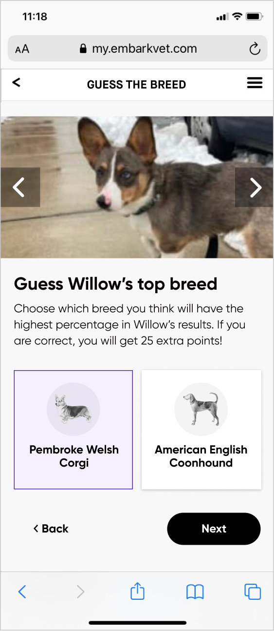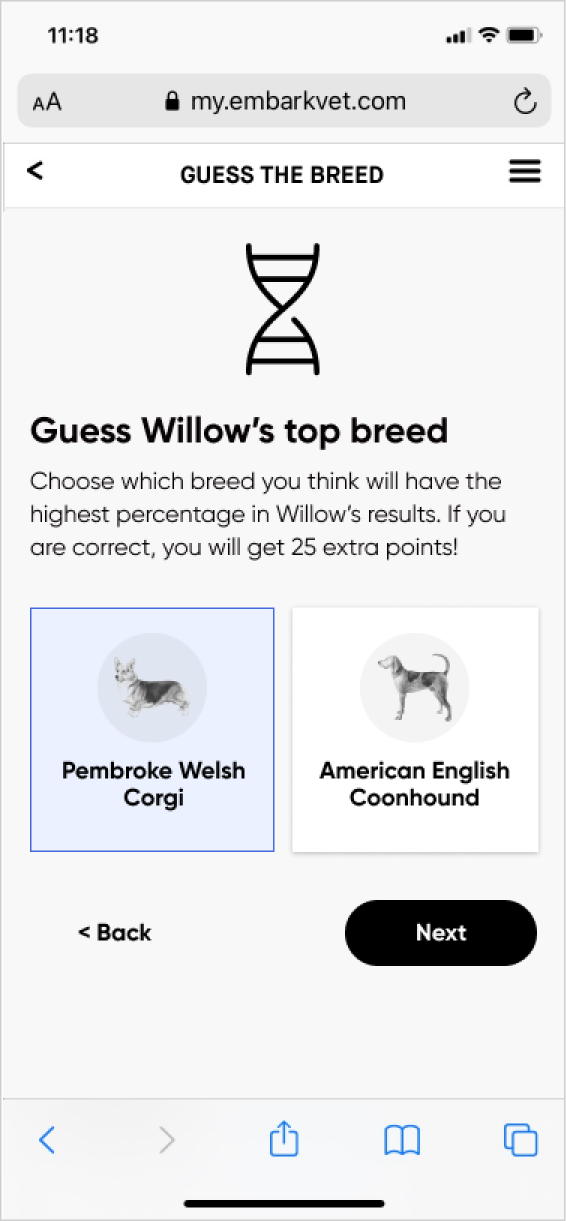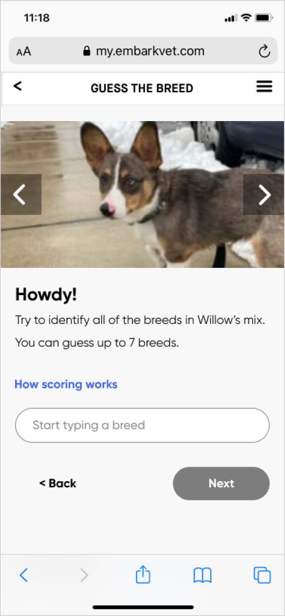 Give our customers something fun and delightful to engage with while waiting for their results by providing a strong alternative to the social media guess the breed experience
